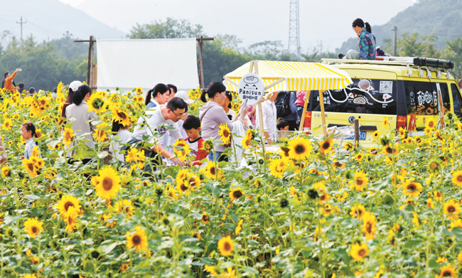 秋日的寧波寧海梅林街道鳳潭村,萬株向日葵競相綻放,匯成金色海洋,成為市民打卡新熱點。 這片花海是鳳潭村發展農文旅融合產業的核心成果?!?/a>