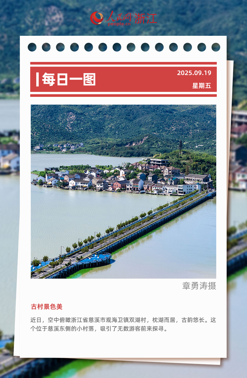 人民網杭州9月19日電 (章勇濤)近日,空中俯瞰浙江省慈溪市觀海衛鎮雙湖村,枕湖而居,古韻悠長。 在“千萬工程”推動下,雙湖村堅持黨建引領,通過加固維修、恢復性重建,讓閑置農房“活”起來,變身茶室、村咖、閱讀空間等新業態,帶動村級集體經濟增收,不僅顯著提升了村民的人居環境,更走出了一條以鄉村有機更新促進共同富裕的新路徑?!?/a>
