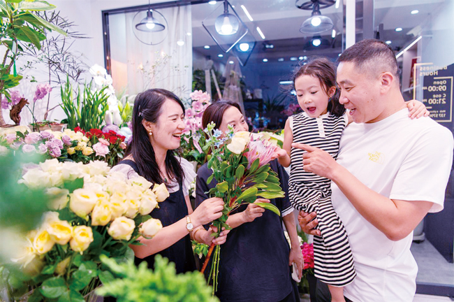 8月27日晚,顧客在金華市區一家花店選購花卉,喜迎七夕。 臨近七夕佳節,人們紛紛來到花店選購鮮花,歡度傳統節日?!?/a>