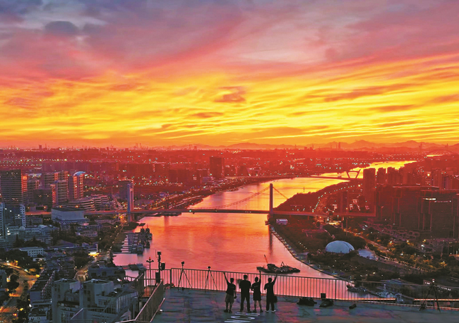 7月2日,絢麗的朝霞染紅天際,將城市樓宇鍍上金邊。甬江宛如一面澄澈的鏡子,隨著水波輕漾,江面碎金閃爍?!?/a>