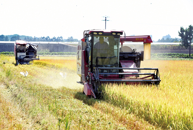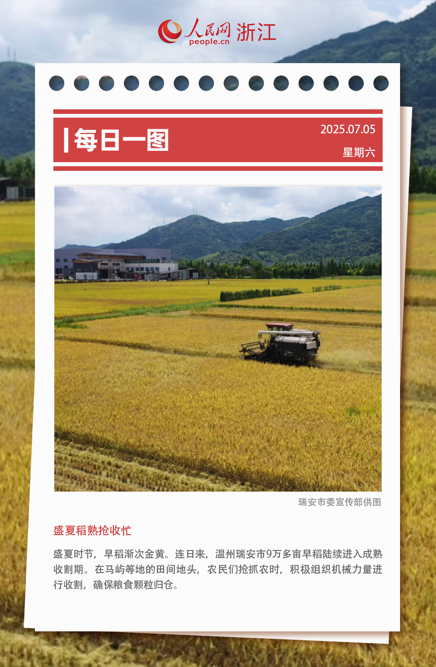 7月5日,金華市婺城區白龍橋鎮下楊村種糧大戶楊桂芳的早稻田里,機聲隆隆,農機手駕駛著收割機在田間來回穿梭,開鐮收割早稻。楊桂芳2025年種植早稻790畝,計劃7月下旬收割完畢?!?/a>