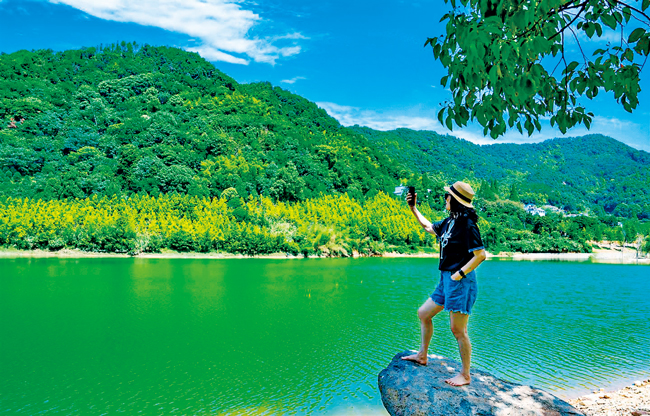 7月5日,金華山雙龍湖景區吸引不少游客前來拍照打卡。 據了解,雙龍湖區塊改造于2024年5月啟動,總投資3000多萬元,目前即將完工?!?/a>