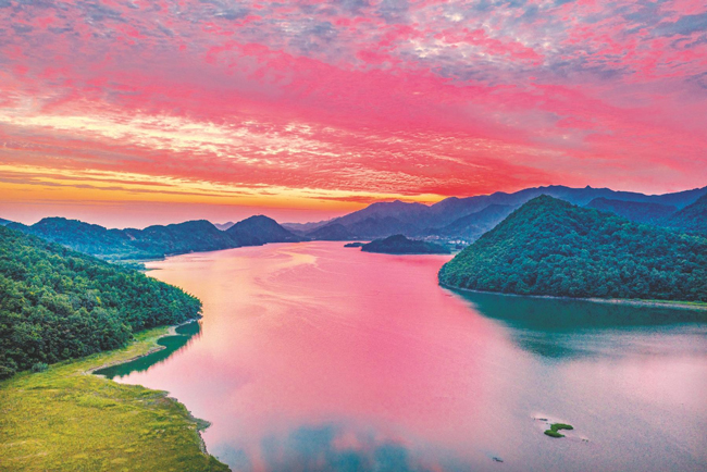 6月5日晨,平水江水庫在朝霞映襯下顯得格外美麗,宛如一幅絢麗多彩的畫卷。該水庫是紹興市柯橋區唯一一座中型水庫,也是紹興市重要的飲用水源地?!?/a>
