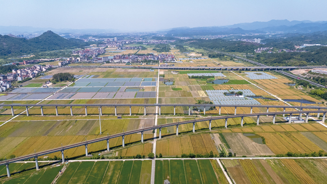 日前,在金華永康市石柱鎮的廣闊田園中,彩色田地、嶄新村莊相依相伴,鐵路縱橫交錯,構成一幅美麗的初夏田園風光圖。(胡肖飛)?!?/a>