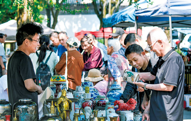 5月11日,在金華古子城內,市民或品鑒古玩或挑選玉器,在尋奇找趣中享受周末的悠閑時光。 記者看到,古玩市場里字畫、文房四寶、玉器陶瓷等珍品琳瑯滿目?!?/a>