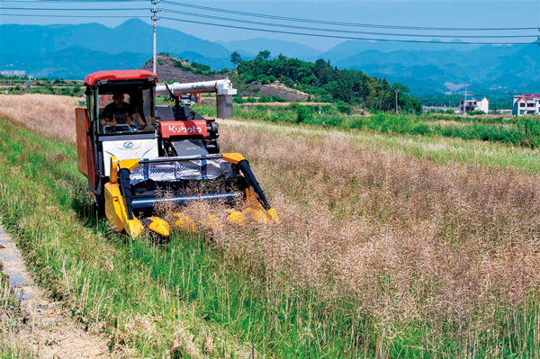 5月13日,在金華蘭溪市香溪鎮萬畝良田基地,數臺機械正忙于收割油菜。連日來,該基地種植的油菜、小麥相繼成熟,當地正組織機械力量進行搶收,并及時翻耕土地,種植新一輪水稻,確保糧食生產不耽誤?!?/a>