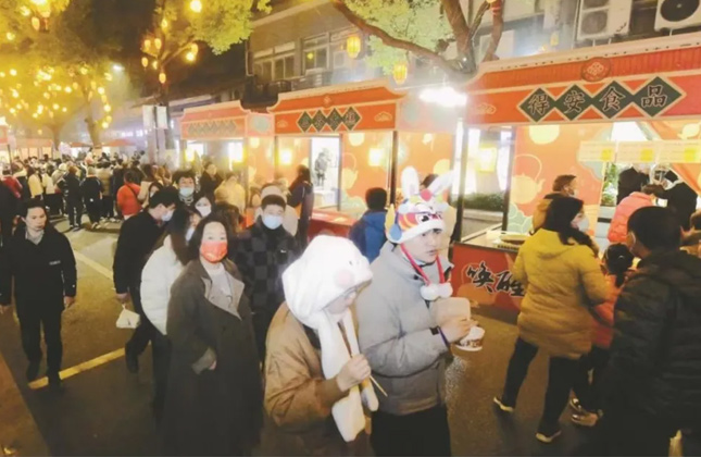 前不久,府橫街小吃一條街開始試營業,這條曾經興盛無比的老街再度迎來復興良機。正值元宵佳節,街上的小吃市集、巡游、越劇、雜耍等活動增添了節日氛圍。在“小吃一條街”打造背景之下,府橫街上的“舊故事”也開始注入新內涵。