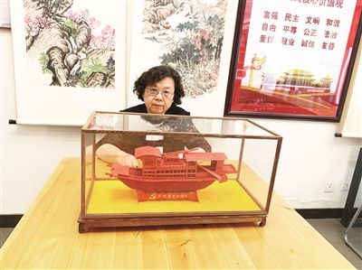 這艘“紅船”的構思,最早來源于桑榆晚晴匠心長者工作室隊長吳憩的一個想法——“紅船精神集中體現了我們黨的建黨精神,值得每一位黨員學習和傳承,我想能不能通過我們親手制作一艘紅船,來慶祝建黨100周年,傳承紅色精神!