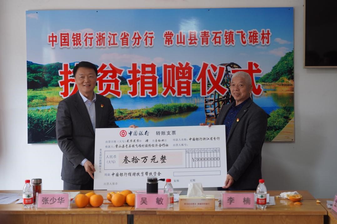 中國銀行浙江省分行向衢州常山飛碓村捐贈幫扶資金30萬元