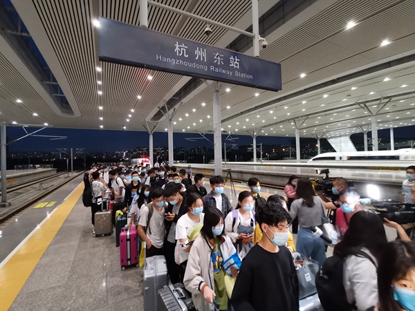 據悉,該趟列車從恩施至杭州東運行時間9個多小時,153名復學學生乘坐在2、3號車廂,旅行全程實行閉環式管理,人員登車后中途不下車。到達杭州東站后,按照杭州市疫情防控措施要求,這些學生在逐一接受體溫測量和身份核驗后,由學校統一組織接回。