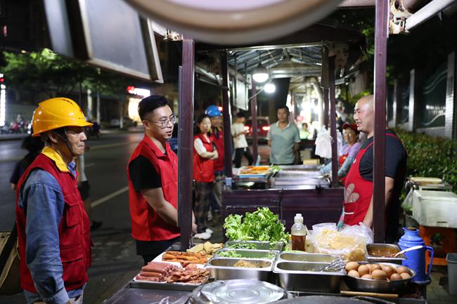 人間煙火氣,最撫凡人心。近日,每到下午4點,浙江農林大學西門街邊陸陸續續的小吃攤開張了。“大哥,我這盞燈有時候會忽閃忽閃的,你能幫我來看看嗎?”地攤老板季金翠看見帶著電力安全帽的“紅馬甲”從攤前走過,就趕緊叫住他們。