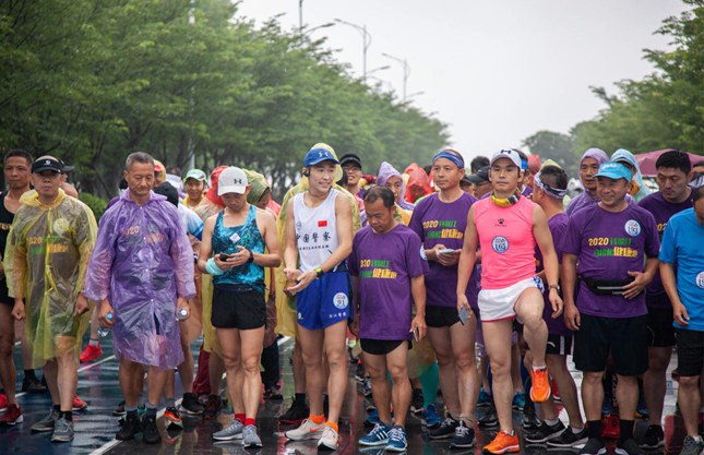 6月20日,蒙蒙細雨中“2020錢塘江馬拉松健康跑”在杭州錢塘江畔彩虹跑道鳴槍開跑。