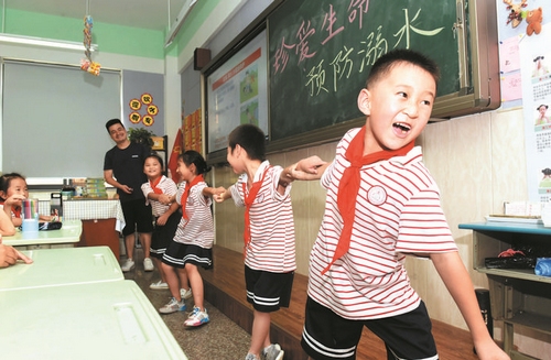 隨著天氣轉熱和暑假到來,學生溺水事故也進入多發期。近日,浙江武義縣壺山小學開展了“珍愛生命·預防溺水”主題班會,武義縣民防應急(地震)救援隊隊員為學生們詳細講解玩水、游泳安全等知識,并現場教授了簡單的自救辦法,讓學生現場體驗安全救援小技巧。