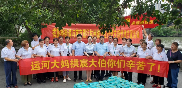8月11日,南京銀行杭州城北支行黨支部與拱宸橋街道在運河廣場初心驛站開展了主題為“夏日送清涼”的黨建共建活動。
