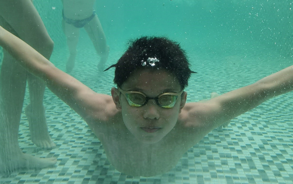 游泳運動帶給我滿滿的自信。雖然我現在個子不高,但是身為體育委員的我,能帶領好同學們上好每一節體育課。