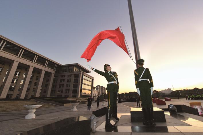 新年第一天,南湖兒女升國旗