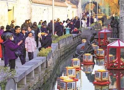 昨天(1月2日),寧波江北區慈城古鎮迎來元旦假期近郊游小高峰。古色古香的步行街上張燈結彩,大紅燈籠高高掛起,洋溢著濃濃的喜慶氣氛,不少市民和游客前來賞花燈、逛集市、品美食、看美景,歡度假期。