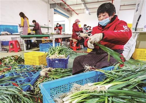 1月27日,在臺州農港城三樓,臺州億維緣貿易有限公司內,十多名員工正在對水果、蔬菜等貨物進行分揀包裝。年關臨近,據該公司總經理李承澤介紹,公司主要給一些飯店、網購平臺配送,日均3萬單左右,訂單量接近去年同期的2倍,有時需要員工24小時輪班運轉。