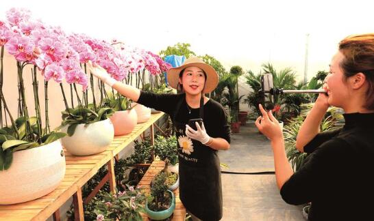 昨天(2月3日),浙江省海寧市農村電子商務示范村長安鎮天明村花卉園區員工正在大棚里直播銷售春節“年霄花”。天明村擁有1600多畝花卉,春節臨近,花卉種植企業通過直播等形式營銷,生意十分火爆。