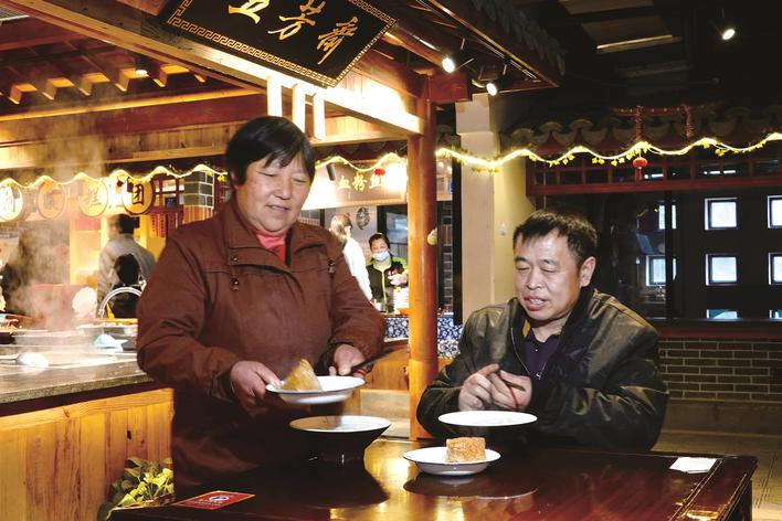 大年初六,環衛工夫妻李敏、龔碧香來到市區南門頭,品嘗嘉興美食,感受嘉興年味。