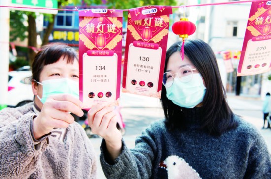 2月24日,在金華市區城北街道常青社區,居民們開開心心地參加猜燈謎活動。400多條元宵燈謎掛在了社區服務中心門前,吸引了不少居民前來。燈謎謎底涉及消防安全、禁毒知識、法律法規、疫情防控、金華歷史文化等多項內容,居民們在猜謎語的同時,還能學到不少知識。當天,社區工作人員還把包好的湯圓送給轄區里的老年人品嘗。