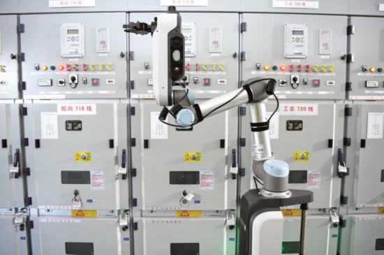 這是全國首臺具備電力系統開關室倒閘操作及巡檢能力的地面輪式機器人,它能自主移動、精準定位到開關柜前,并且能夠靈活地完成“非接觸式”驗電、倒閘、緊急分閘操作,還有圖像識別、紅外測溫等常規巡檢操作。(王振宇、郝瑋)