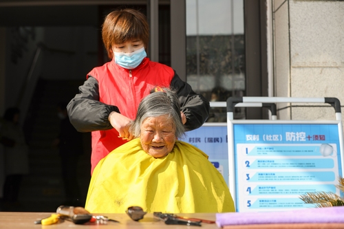 3月4日,在浙江省湖州市南潯區千金鎮,該鎮知聯會愛心志愿者正在為老人們義務理發。在學雷鋒紀念日即將到來之際,千金鎮開展義務理發、愛心義診等多種形式的志愿服務活動,以實際行動傳承雷鋒精神。