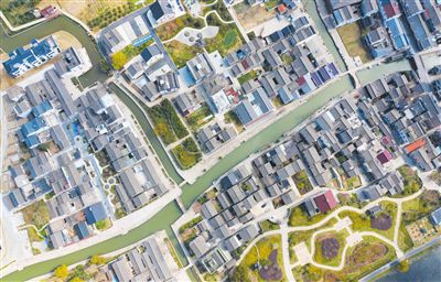 俯瞰近日的湖州市吳興區織里鎮義皋古村,溇港、古宅、古橋、老街相映成趣。近年來,依托“太湖溇港第一村”保存完好的傳統民居及歷史遺存,義皋古村通過發掘溇港文化、拓展旅游設施和服務,成功升級為太湖溇港景區,帶動太湖南岸鄉村振興。