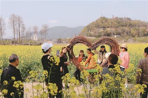 3月12日,浙江臨海靈江南岸長達2公里的油菜花田里花開正茂,吸引了許多市民前來賞花,油菜花田成為熱鬧的網紅打卡點。(牟永選)