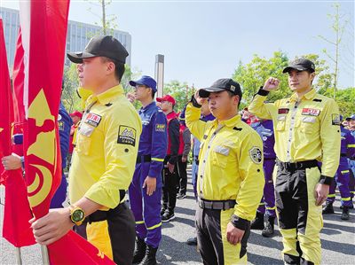 4月9日,杭州市“錢潮老兵”退役軍人志愿服務品牌正式發布,現場,由西湖區、浙大城市學院、藍天救援隊、公羊隊等6支退役軍人志愿服務代表隊組成的志愿服務總隊宣告成立。授旗儀式后,在場隊員集體宣誓,立志將“錢潮老兵”打造成杭城退役軍人永不褪色的“金名片”。