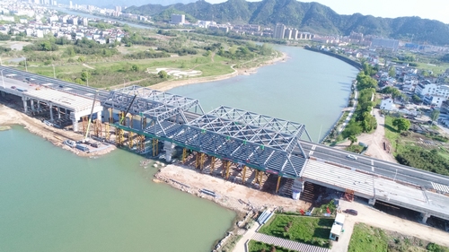 4月11日,浙江交通集團杭金衢改擴建二期最長橋梁——常山港特大橋完成最后一片35米箱梁架設,這標志著該大橋預制梁板全部架設完成。