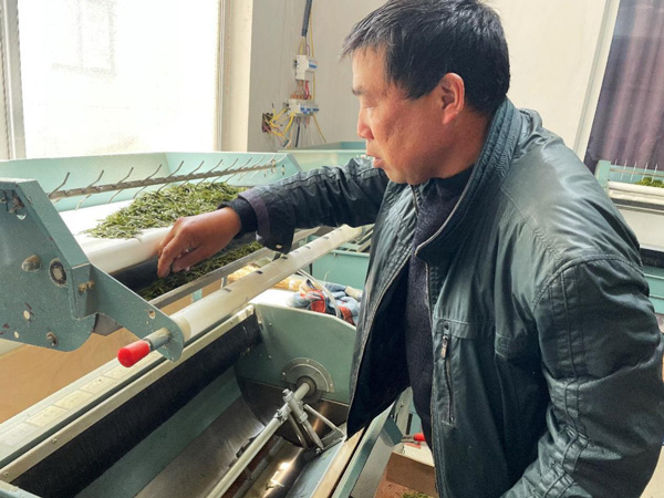 春茶上市,杭州富陽安頂山茶農又迎來了收貨的季節。茶農胡師傅家的炒茶間里,五臺炒茶機翻轉著齒輪,轟隆作響,胡師傅正輪流把炒好的茶葉挑揀均勻,一刻也閑不下來。