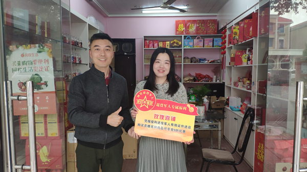 這位店主是鐘管鎮現役軍人沈杰鋒的母親。3月12日,她來到該鎮退役軍人服務站詢問加入“擁軍商鋪”的相關事宜,“兒子參軍,作為家屬感到十分光榮,F在我們鎮上對于退伍軍人有很多優惠,我開了一家喜糖店鋪,也希望為所有軍人做點力所能及的事!