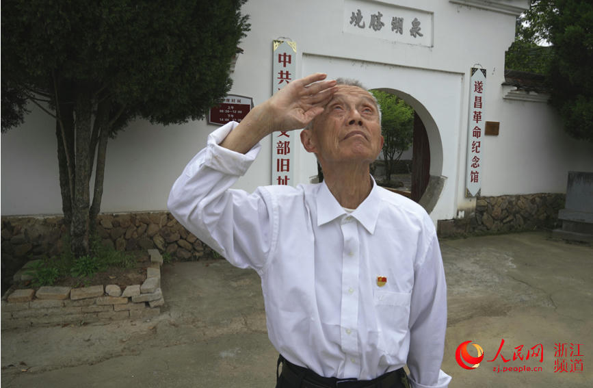 老人名叫朱宗鶴,今年88歲,是中共遂昌支部舊址(遂昌革命紀念館)的管理員。沒有旁人的相伴,這樣一個人的升旗儀式,他已經堅持了20年。