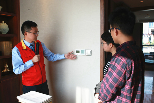 國網紹興供電公司員工為開發商講解電采暖技術。許倩汝攝