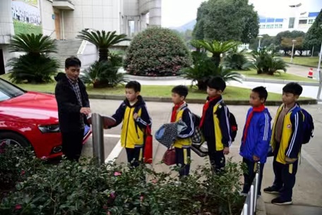放學時間,義烏市實驗小學校門口隔一段時間就有一批家長一同前往接送區接小孩放學,校門口也沒有出現車輛亂停放的現象。該校建設了3個上下學接送區,接送區內設置了遮雨廊、休息桌椅、LED顯示屏、防沖撞花箱、綠化隔離帶等,給學生及家長打造了一個安全舒適的接送環境!胺艑W后,學生要刷卡,系統就會將信息推送到家長手機微信上,家長收到后就到相應班級的位置接!痹撔X撠熑苏f,這樣一來,學生可以快速地找到家長,接送非常有序。