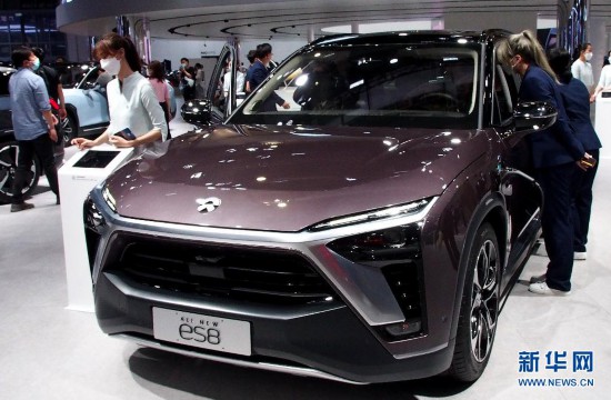 4月28日,觀眾在上海車展現場參觀國產蔚來智能電動車。