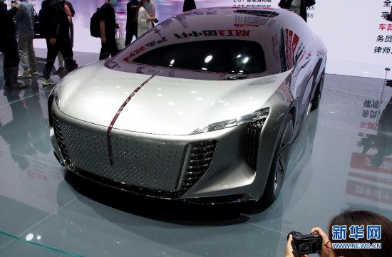4月28日,觀眾在參觀國產紅旗轎車的新能源概念車。