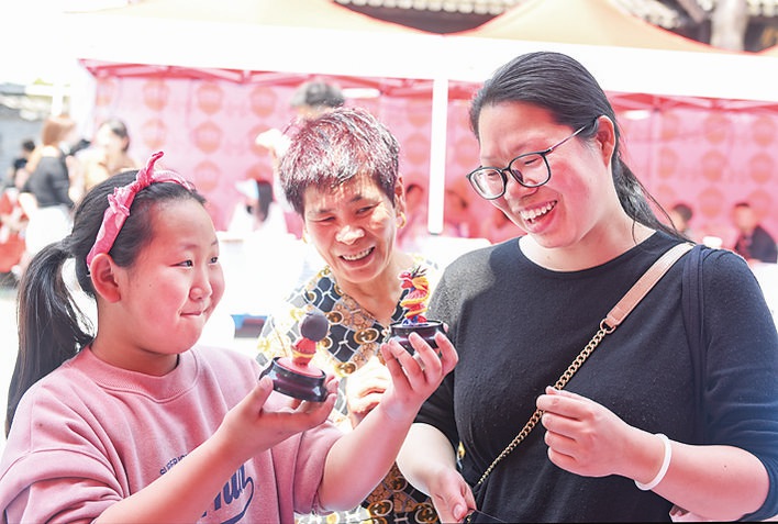 “五一”期間,金華金義新區瑣園村,游客在品嘗非遺美食感受非遺魅力。