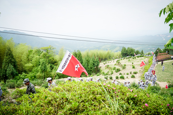 白柯塆的青山綠水之間,一支紅旗招展、士氣昂揚的隊伍徐徐向前。5月11日,在溫州市泰順縣泗溪鎮白柯塆的中國工農紅軍挺進師紀念館前,“紅動浙南·星火燎原”萬人重走紅軍路暨“六個一”黨員教育活動正式啟幕。活動現場,來自該縣各鄉鎮單位的200多名黨員重走紅軍路、重溫紅色故事、體驗互動教學、觀看《挺進師》紀錄片等,在回顧黨的光輝歷史中賡續革命精神、傳承紅色基因、汲取奮進力量。