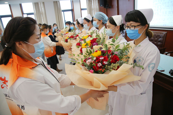 在第110個國際護士節到來之際,5月11日下午,臺州路橋區橫街鎮學雷鋒志愿隊的志愿者們來到路橋區第三人民醫院醫共體總院,開展“把最美的祝福送給白衣天使”為主題的護士節慰問活動,為白衣天使們送上鮮花、蛋糕以及節日祝福。(王國洋)