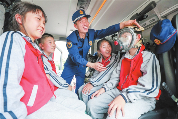 湖州吳興區消防救援大隊近日走進愛山小學教育集團常溪小學,開展“防災減災,消防安全宣傳”主題活動。利用學校大課間,開展拿水槍賽跑、水帶打保齡球、快速佩戴空氣呼吸機等特色活動,讓孩子在享受運動的同時學習消防安全知識。(陸一平)