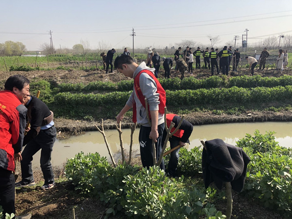 楊明帶領大家補種桑苗、逐步整修道路、恢復桑地,規劃整修已坍塌魚塘。和孚鎮人大供圖
