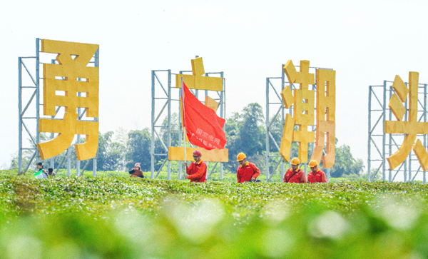 國家電網浙江電力(衢州)紅船共產黨員服務隊為茶農檢查用電線路。吳文濤攝