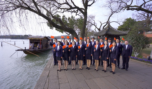 中國移動在嘉興南湖舉辦“紅色傳承映初心 黨旗飄揚在一線”宣傳教育活動。亦通攝
