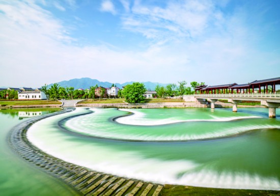 金華婺城區安地鎮巖頭村,巖頭堰、廊橋呈現出美麗水景,盡顯江南水鄉神韻。近年來,巖頭村以水治理為契機,衍生出詩畫巖頭文化產業園等多個旅游項目,吸引了13家文創企業入駐,鄉村旅游發展勢頭良好,成為遠近聞名的“網紅村”。(陳少華)