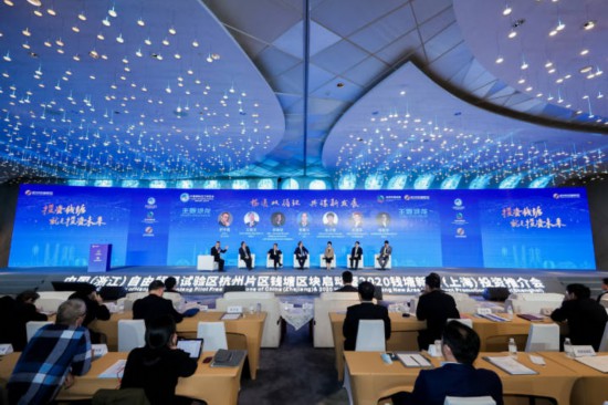 去年11月,中國(浙江)自貿試驗區杭州片區錢塘區塊將啟動儀式“搬”到上海。錢塘區委宣傳部供圖