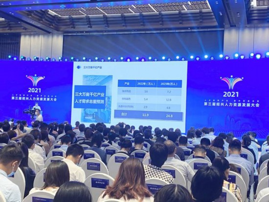 三大產業的發展,需要人才配套,F場,紹興市人力社保局還首次發布了三大“萬畝千億”產業人才需求報告。以紹興集成電路產業為例,報告測算到2022年和2025年,人才需求將分別達到3.6萬人和7.2萬人左右。其中2022年紹興集成電路產業研發工程師需求將達到5500人,工藝工程師和技術工需求分別達到1.3萬人。到2025年,相應類型人才需求更是達到1萬人和2.5萬人。而對于生物醫藥產業,2025年人才需求將達到12.7萬人?偟膩砜,2022年三大“萬畝千億”產業人才需求總量11.9萬人。2025年,人才需求更是增長至24.8萬人,較2022年增幅超過100%。