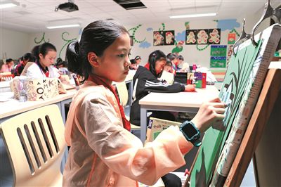 “小歌星”引吭高歌,“小演講家”即興演講,“小書法家”揮毫潑墨……在5月28日舉行的第二十屆“小八仙”大會師活動上,400余名寧波慈溪少先隊員會聚青少年宮,展開才藝比拼,充分展示該市少年兒童健康向上的精神風貌和藝術風采。圖為慈溪“小畫家”同臺競技。(陳章升、翁夢琪)