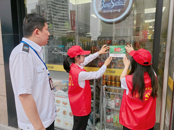 寧波市煙草專賣局組織黨員志愿者深入零售戶,開展明示承諾自查服務,幫助新增零售戶張貼明示承諾標語,充分引導廣大卷煙零售戶和電子煙經營者牢固樹立未成年人保護意識,切實督促其把牢法律紅線、履行社會責任。(張兢兢)